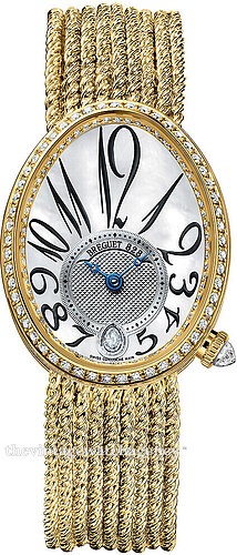 | Dial: | White Mother of pearl with arabic numerals, diamanonds and index markings |