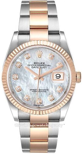 | Dial: | White Mother of pearl with diamonds and index markings |