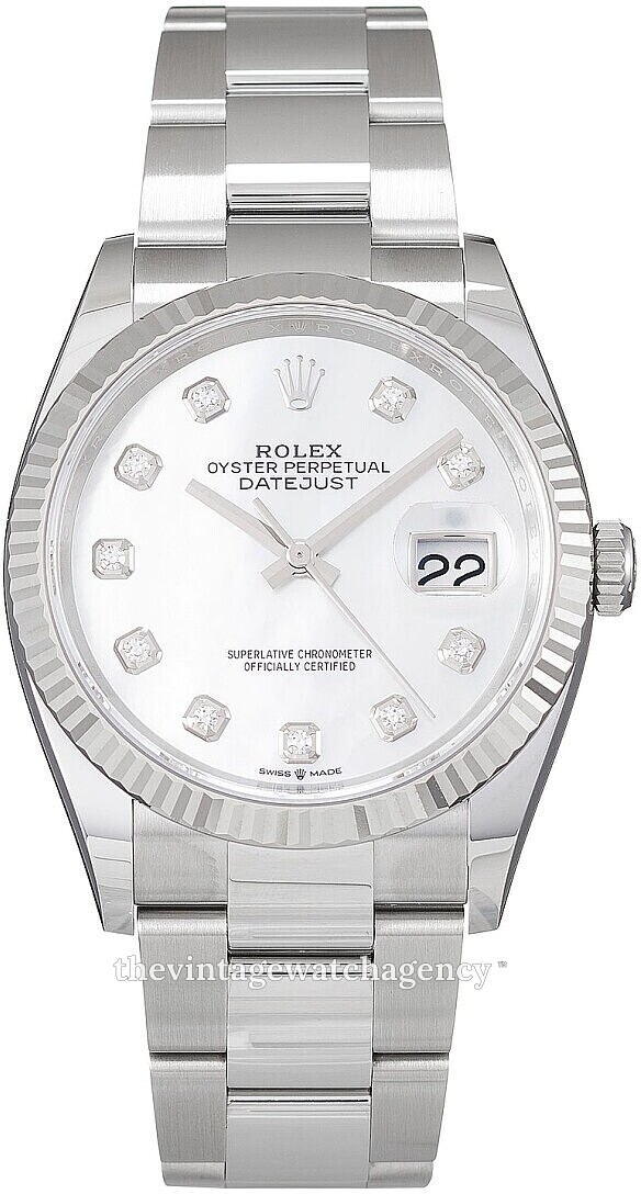 | Dial: | White Mother of pearl with diamonds and index markings |