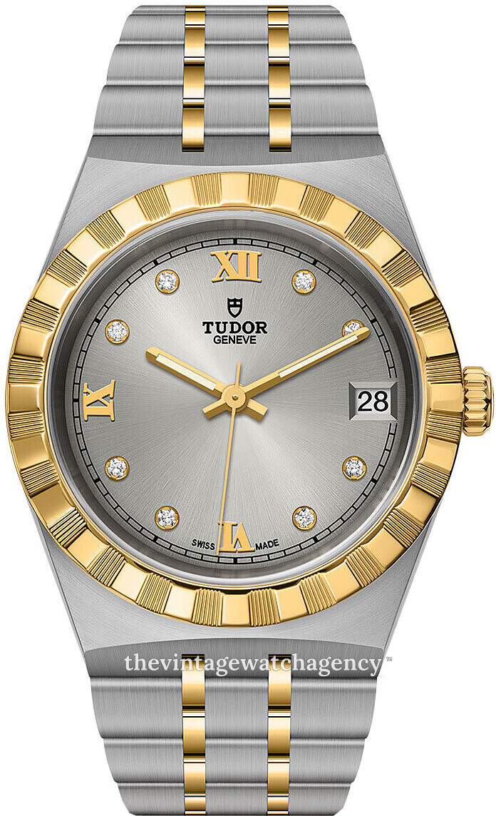 | Dial: | Silver with diamonds/roman numerals, luminescent hands |